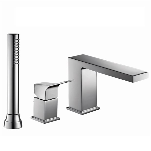 Комплект врезной на 3 отверстия для ванны и душа с однорычажным смесителем и изливом с переключателем.